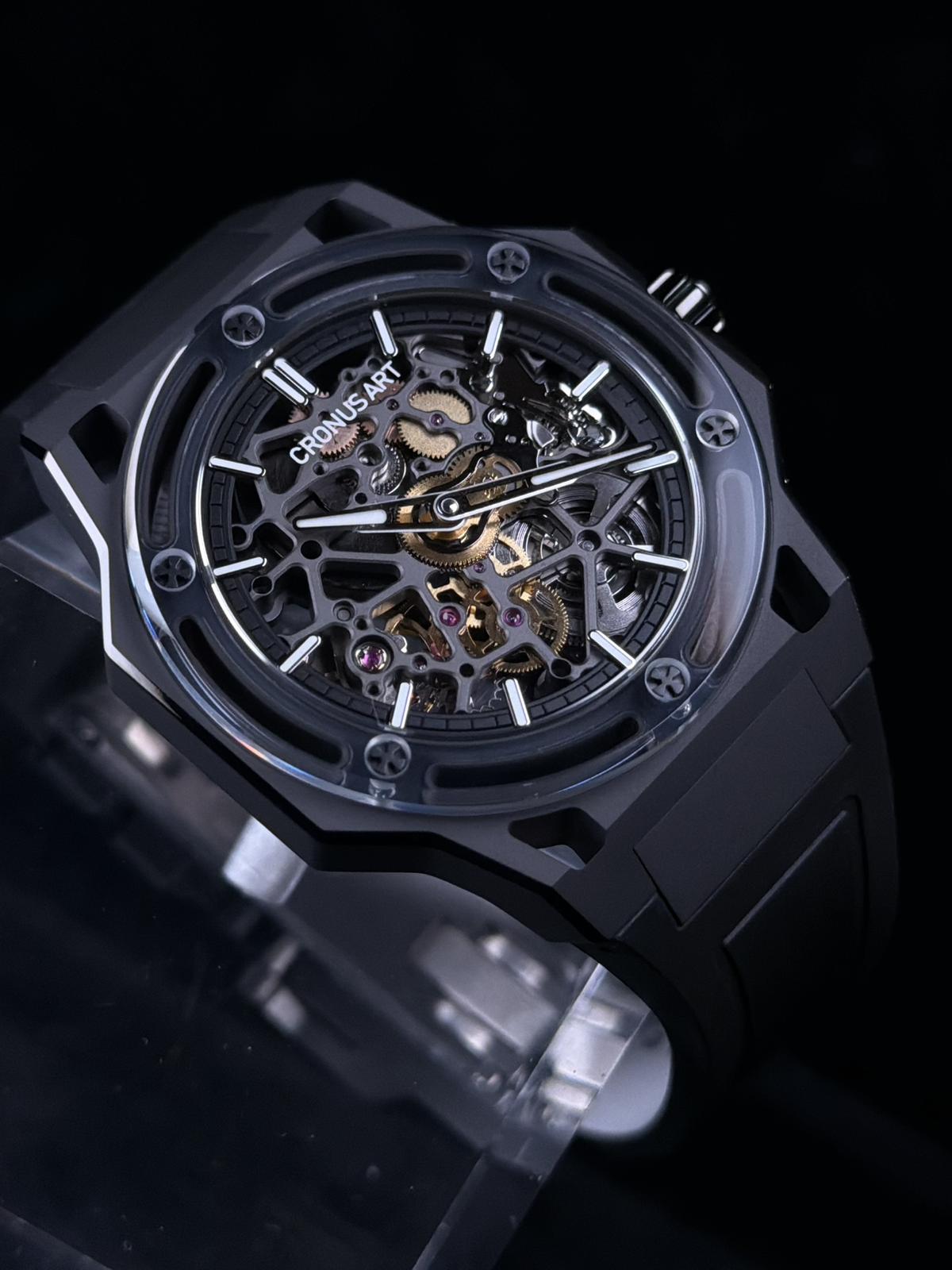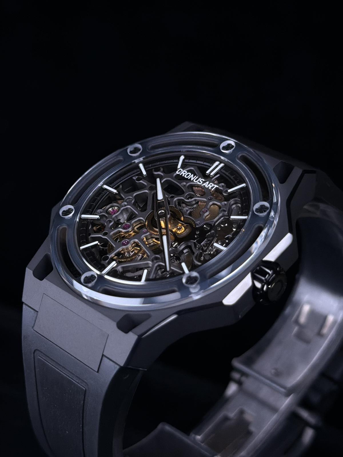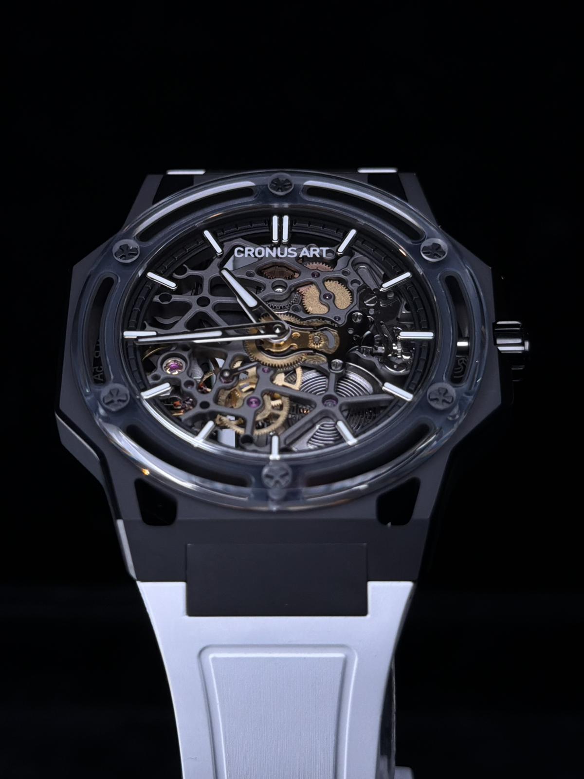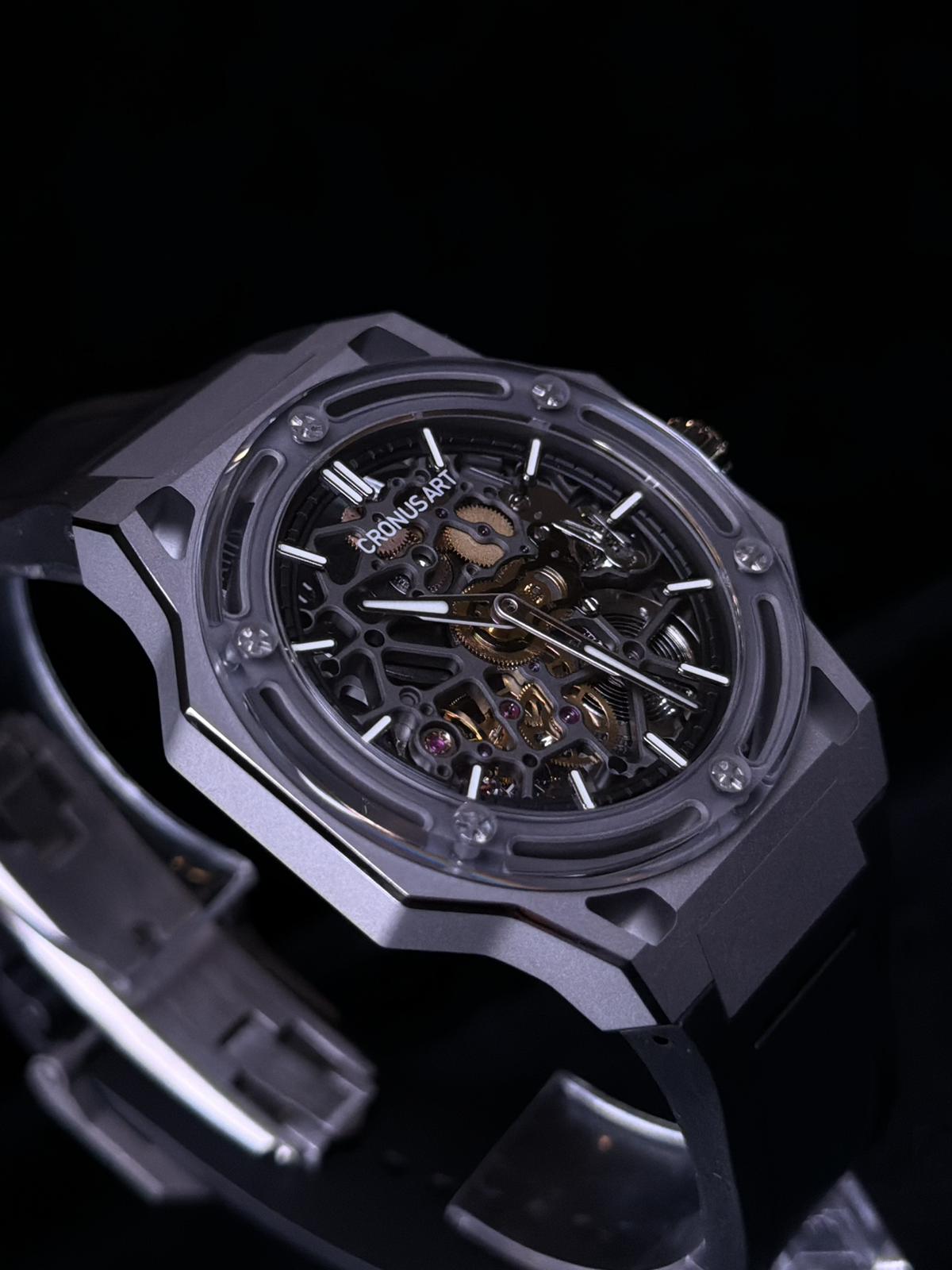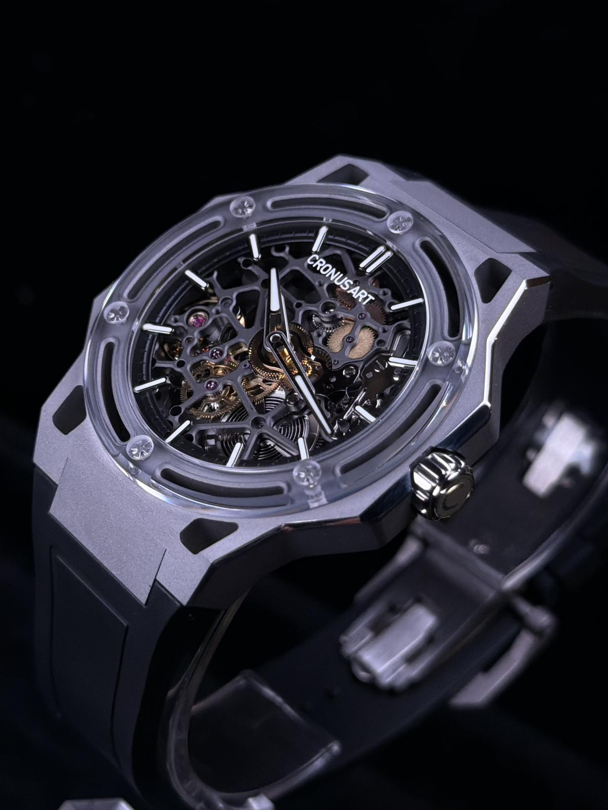 42mm錶殼size,底面藍寶石水晶鏡,鈦金屬殼,50米生活防水,氟橡膠錶帶