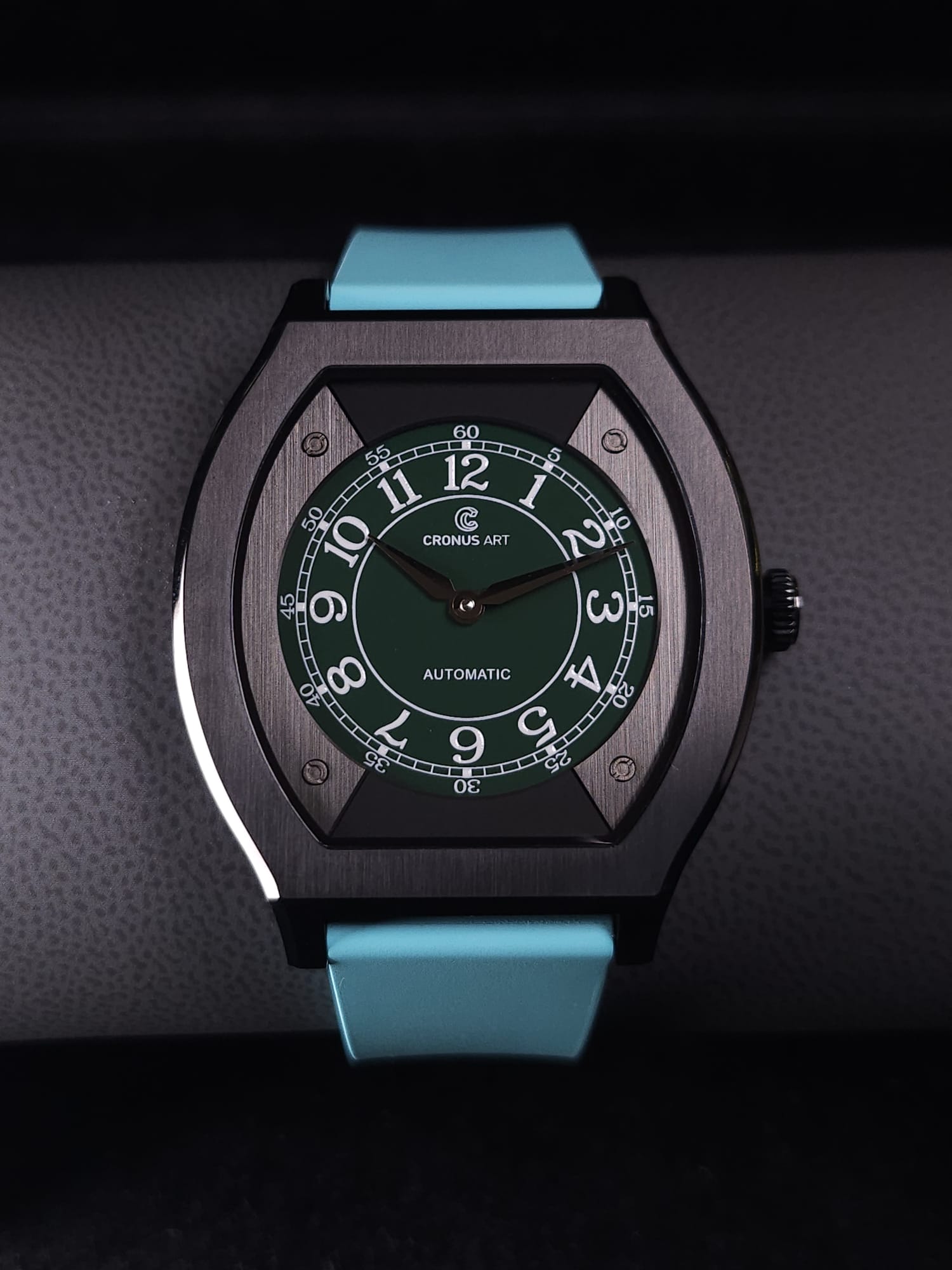 40mm錶殼size, lug to lug 49mm, 藍寶石水晶鏡, 杭州珍珠陀自動機芯,優惠期內額外附送一條黑色膠帶