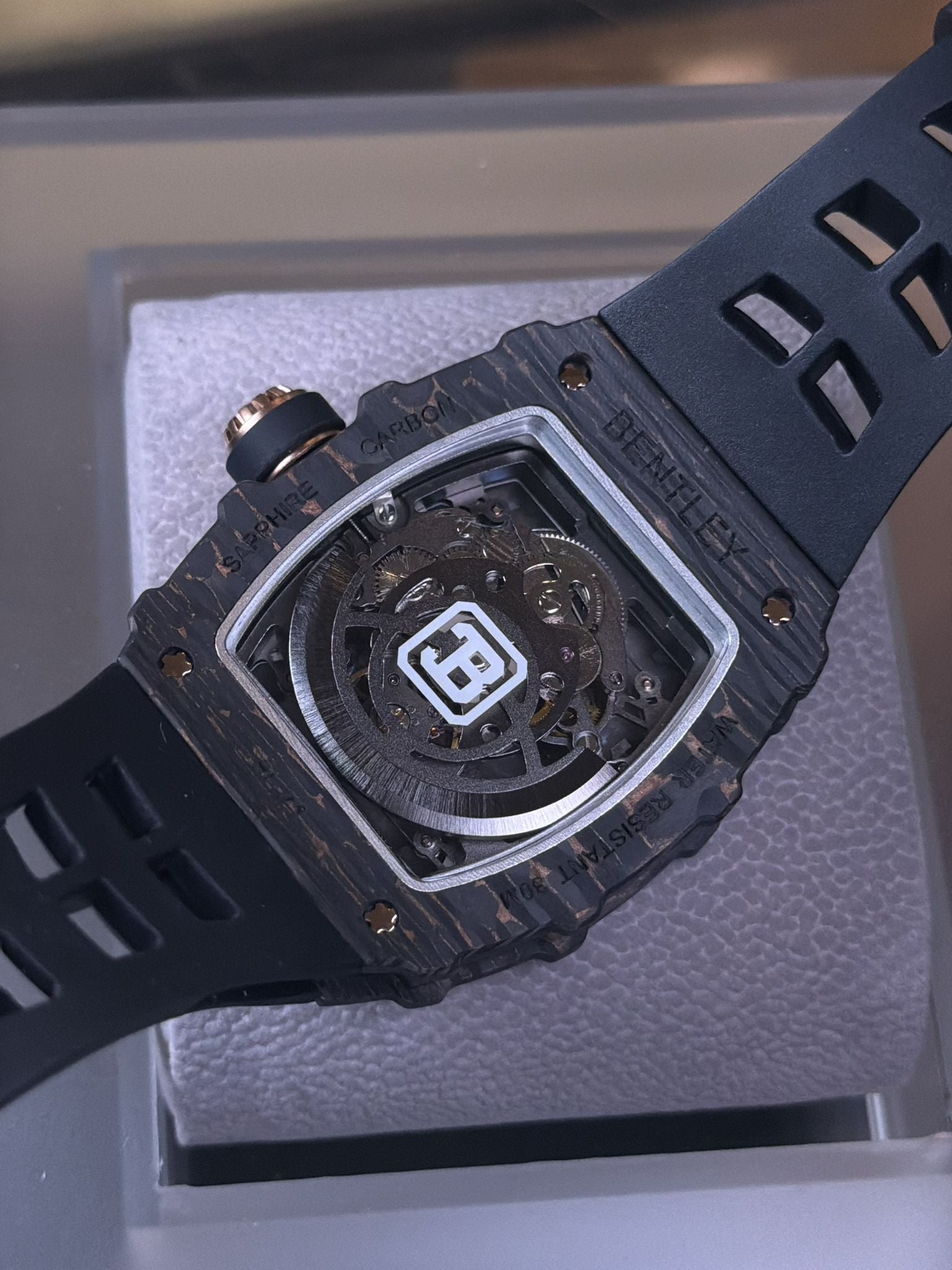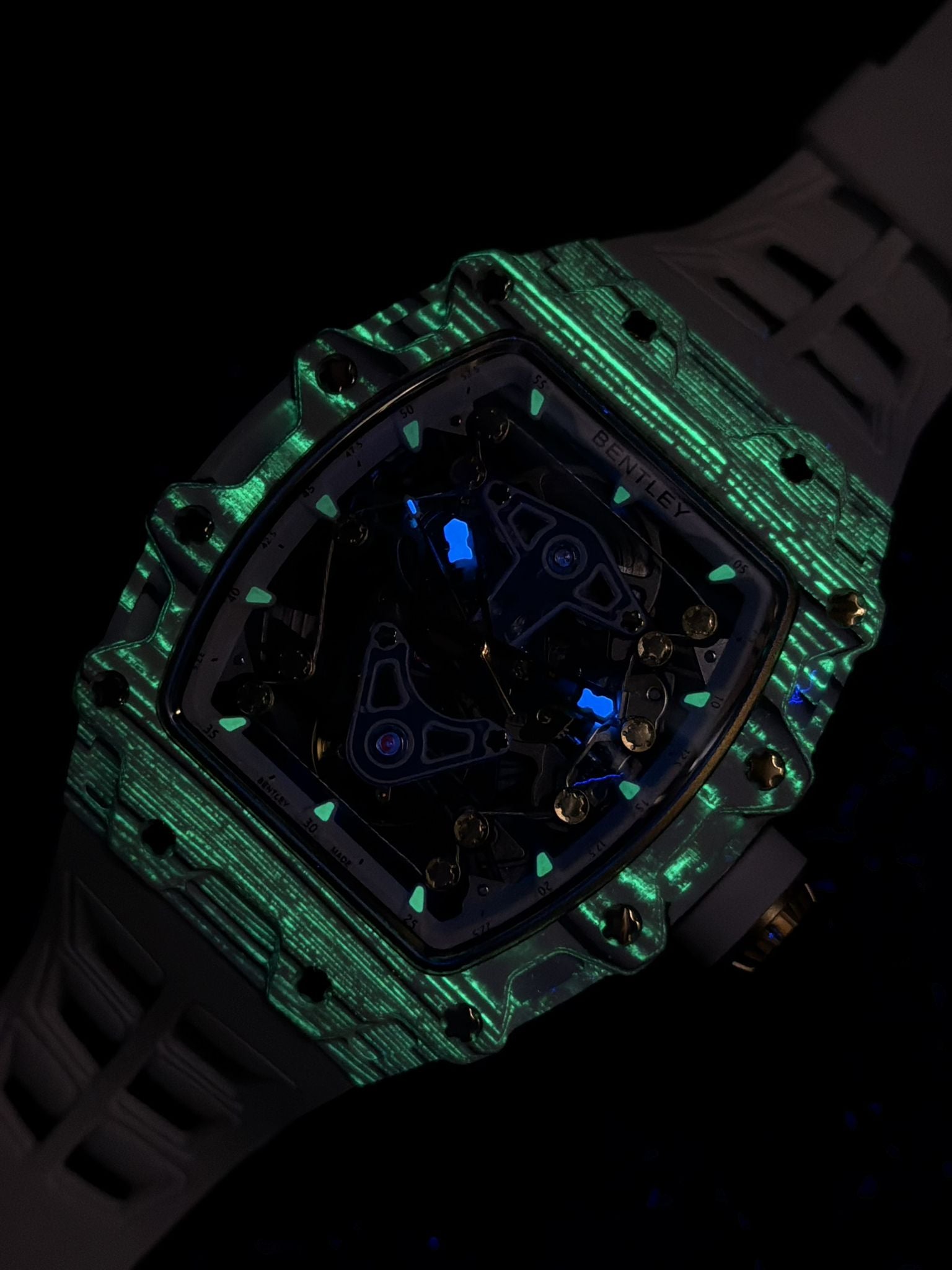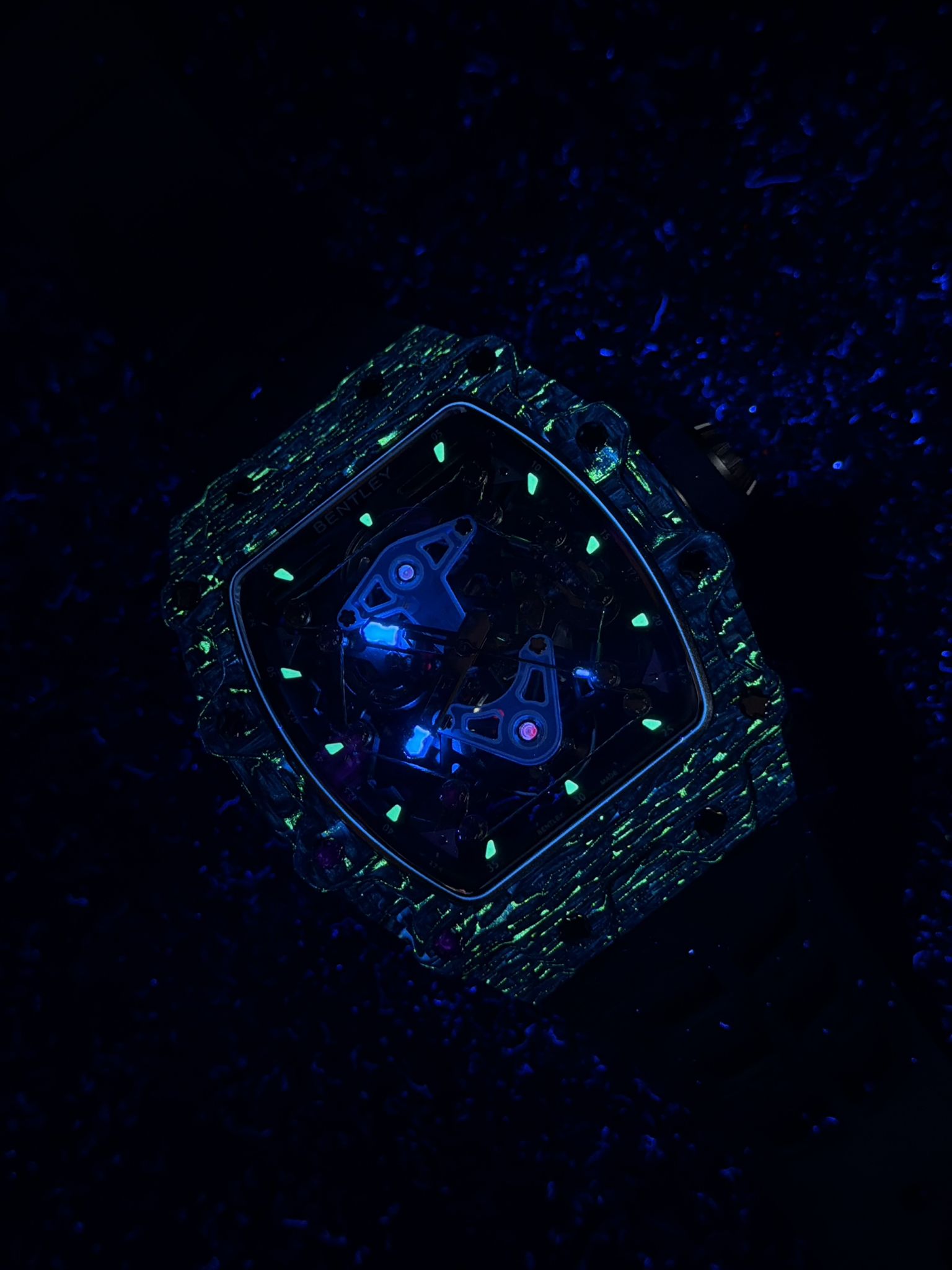 43mm錶殼size,夜光碳纖殼,藍寶石水晶鏡,50米生活防水