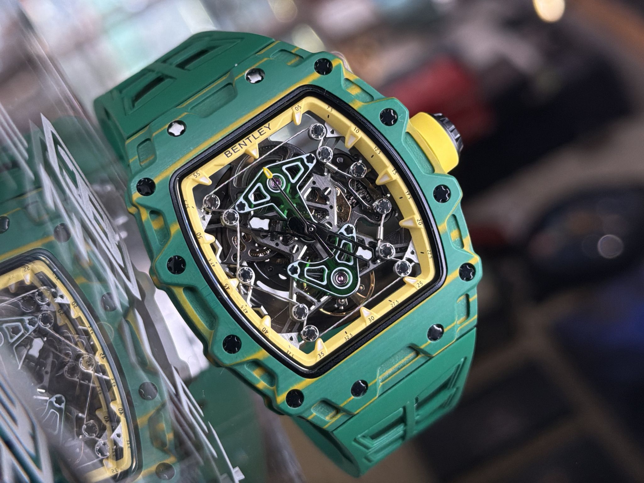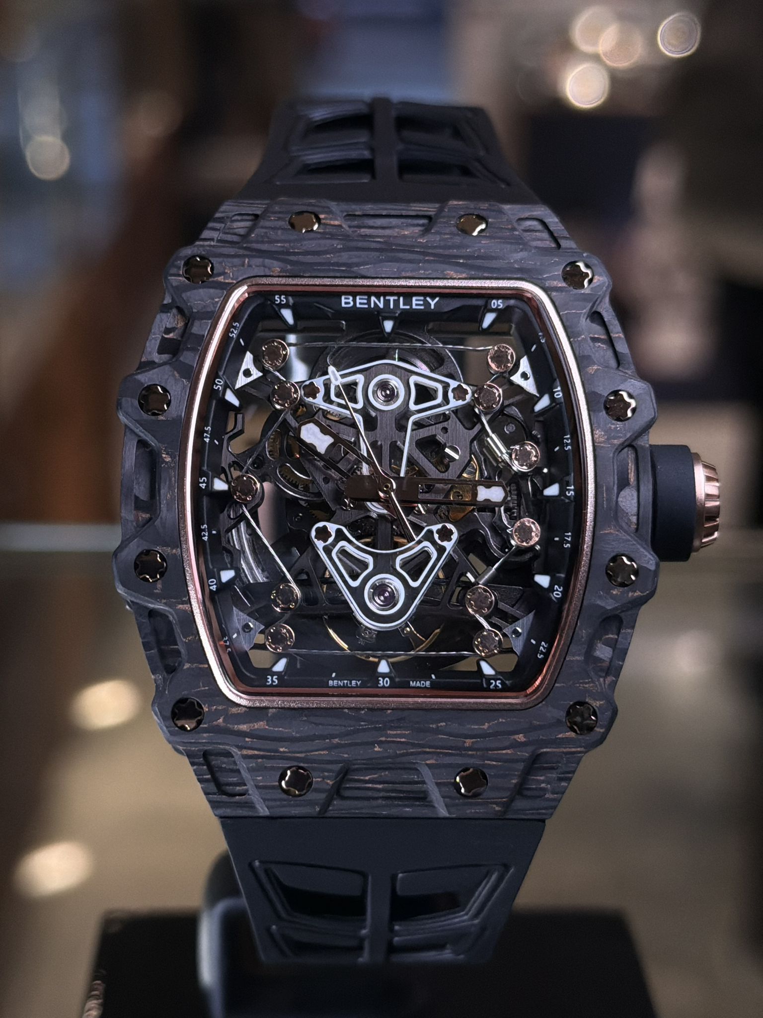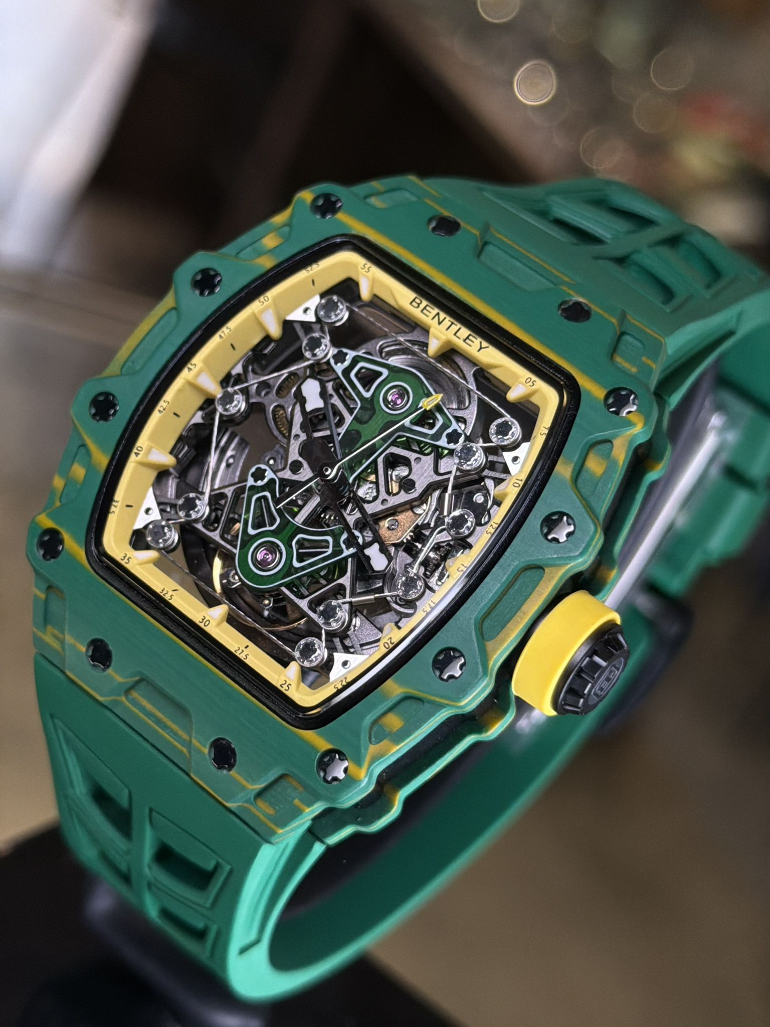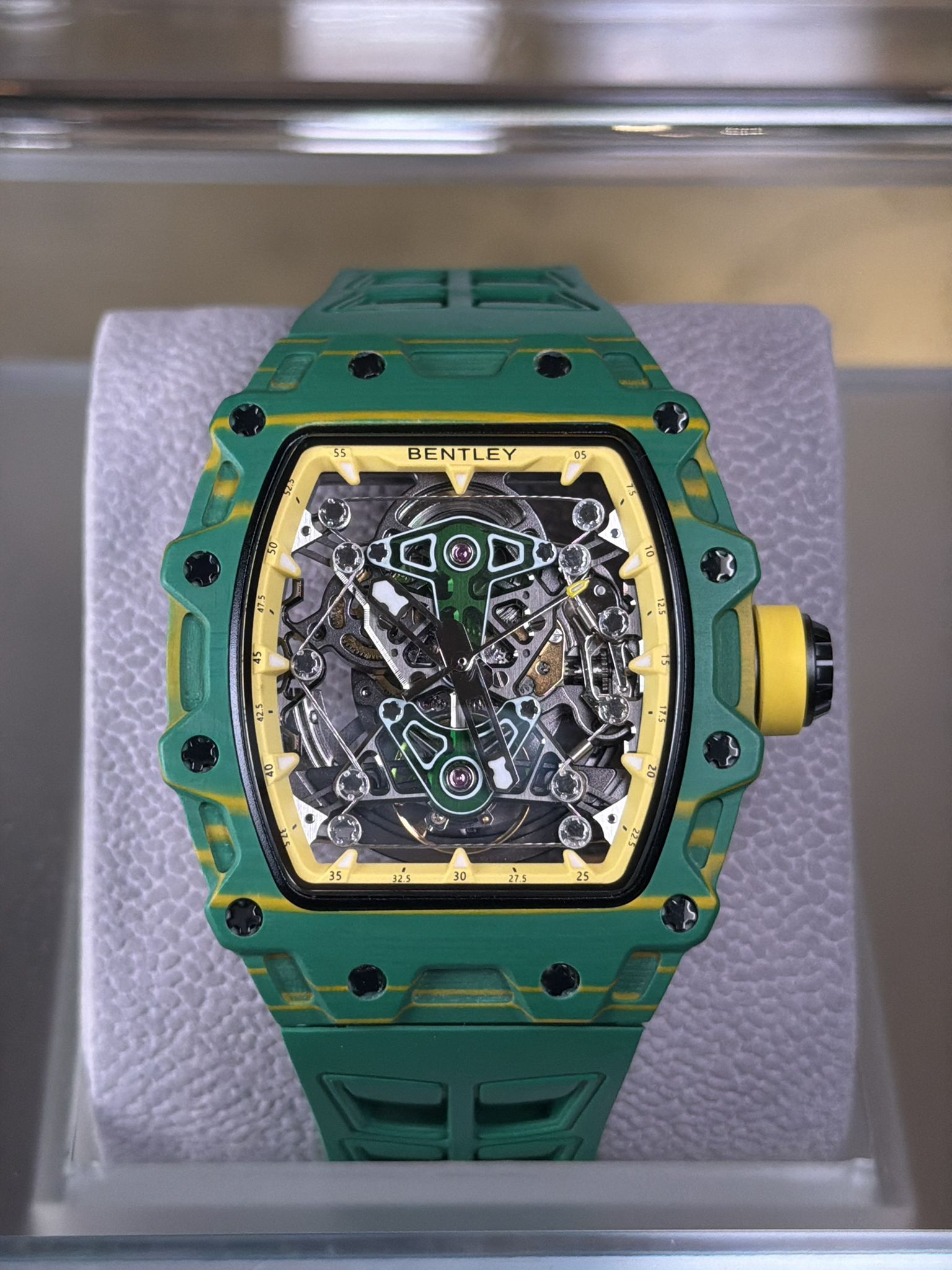 43mm錶殼size,夜光碳纖殼,藍寶石水晶鏡,50米生活防水